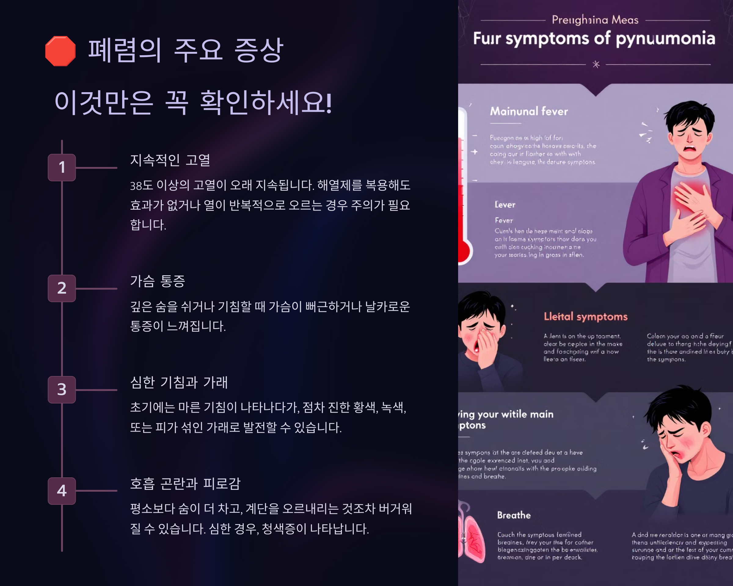 🛑 폐렴의 주요 증상: 이것만은 꼭 확인하세요!