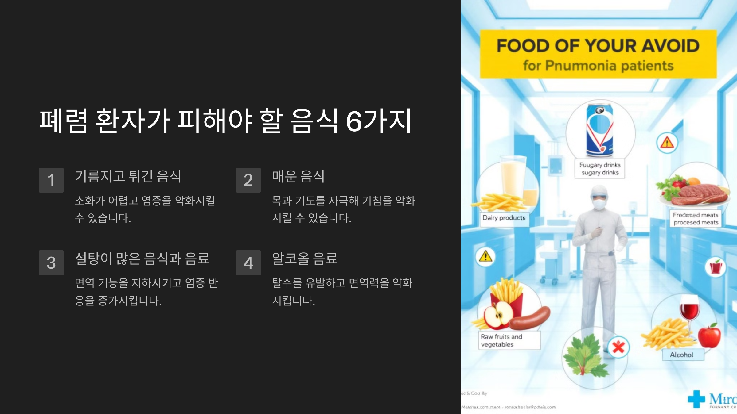 오늘은 폐렴 환자가 반드시 피해야 할 음식과 그 이유를 알려드릴게요.